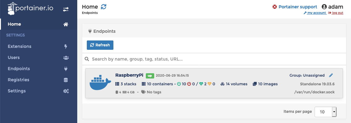 Portainer provides an easily navigable GUI that helps you to manage your docker container workload. It’s not necessary to run it in order to manage the containers on your Raspberry Pi but it a little easier to visualise whats going on with your system and provides remote management of your running services without having access to SSH.